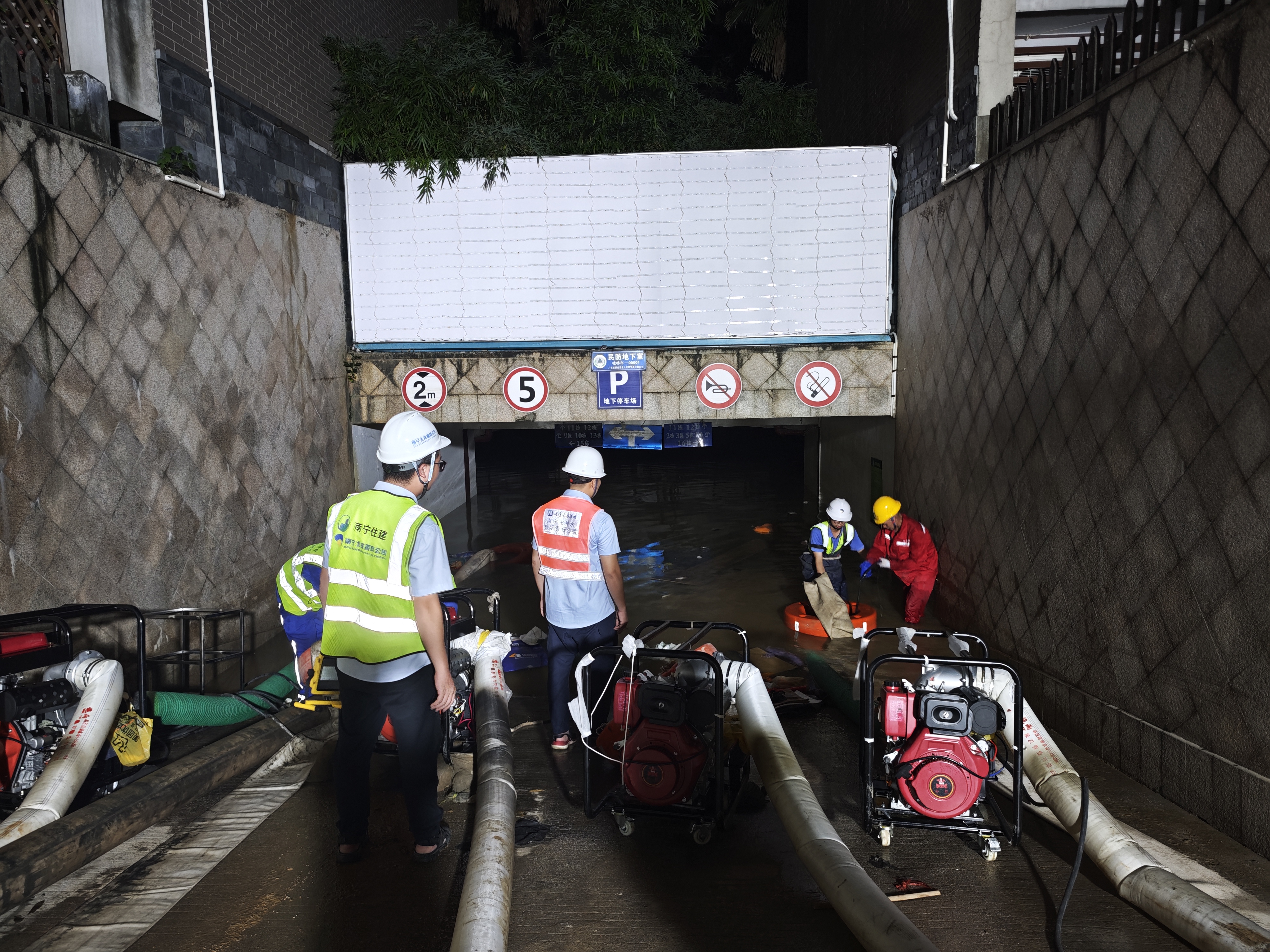 市排水公司堅持以高站位對標、高起點(diǎn)謀劃、高效率推進(jìn)、高質(zhì)量落實(shí)開(kāi)展城市排澇應急搶險工作。汛情發(fā)展到哪里,黨旗就插到哪里;隱患發(fā)現在哪里,黨員就奮戰到哪里。2024年以來(lái),市排水公司共啟動(dòng)防內澇應急響應67次,出動(dòng)車(chē)輛4167車(chē)次,抽升設備3351臺次,出動(dòng)搶險人員超2萬(wàn)人次,處置積水事件100次,出動(dòng)時(shí)間由去年的平均12.5分鐘提升至8.7分鐘。2024年汛期,市排水公司先后成功防御“龍舟水”超長(cháng)時(shí)多輪強降雨、超強臺風(fēng)“摩羯”、洪峰過(guò)境等極端天氣,順利完成中高考、第21屆東博會(huì )和峰會(huì )等重大活動(dòng)排水保障工作。