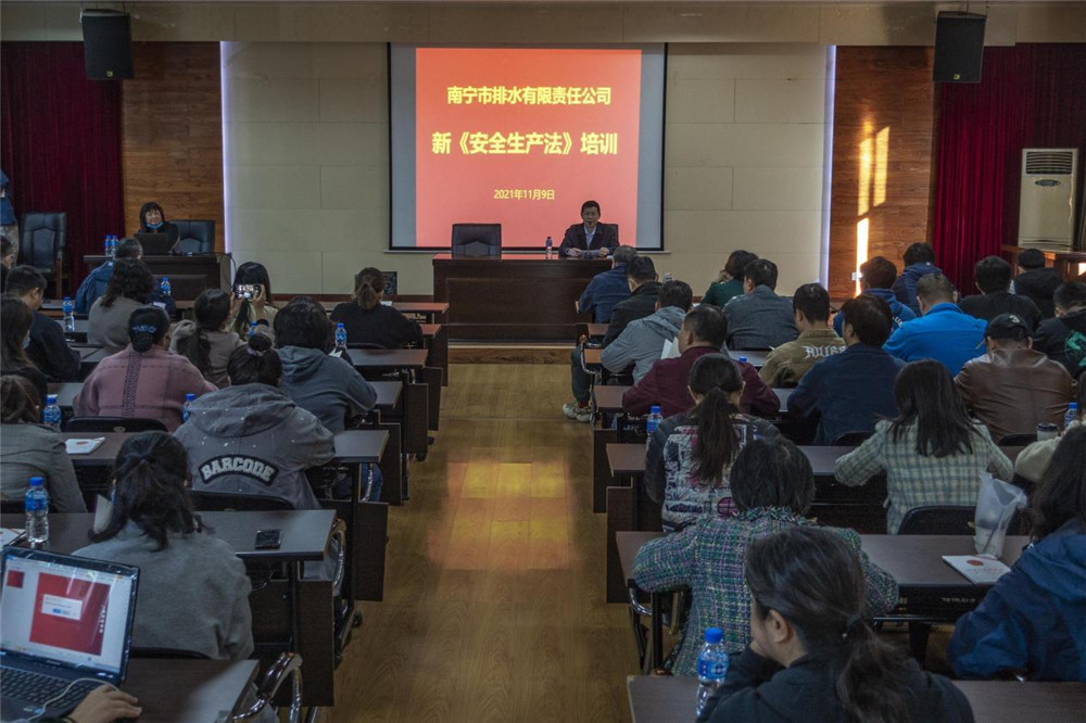 11月9日,排水公司宣貫新《安全生產(chǎn)法》暨“黨員身邊無(wú)事故”主題活動(dòng)在江南污水處理廠(chǎng)二樓會(huì )議室召開(kāi)?;顒?dòng)邀請了高級工程師、注冊安全工程師、南寧學(xué)院教師潘金松授課。