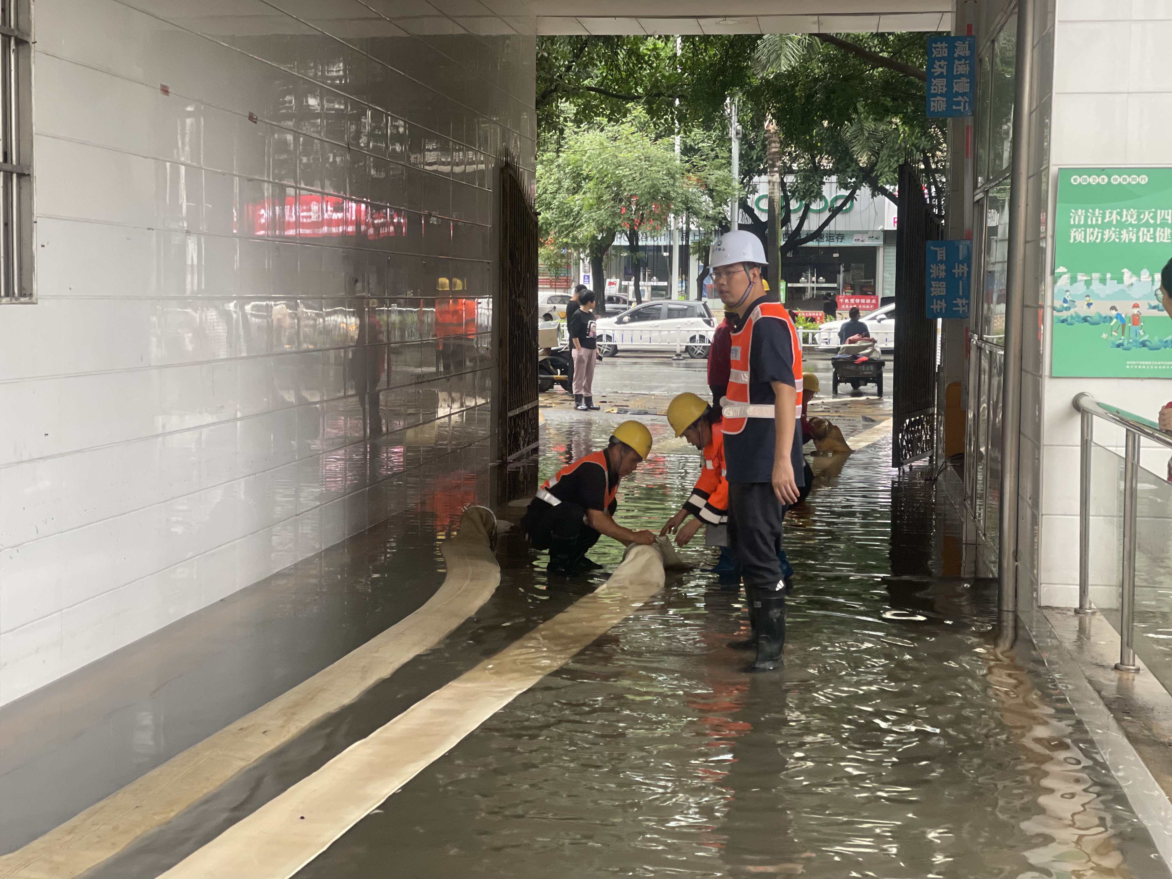 市排水公司搶險隊伍前往東葛路廣西中醫藥研究院開(kāi)展排澇搶險。(李正超/攝)