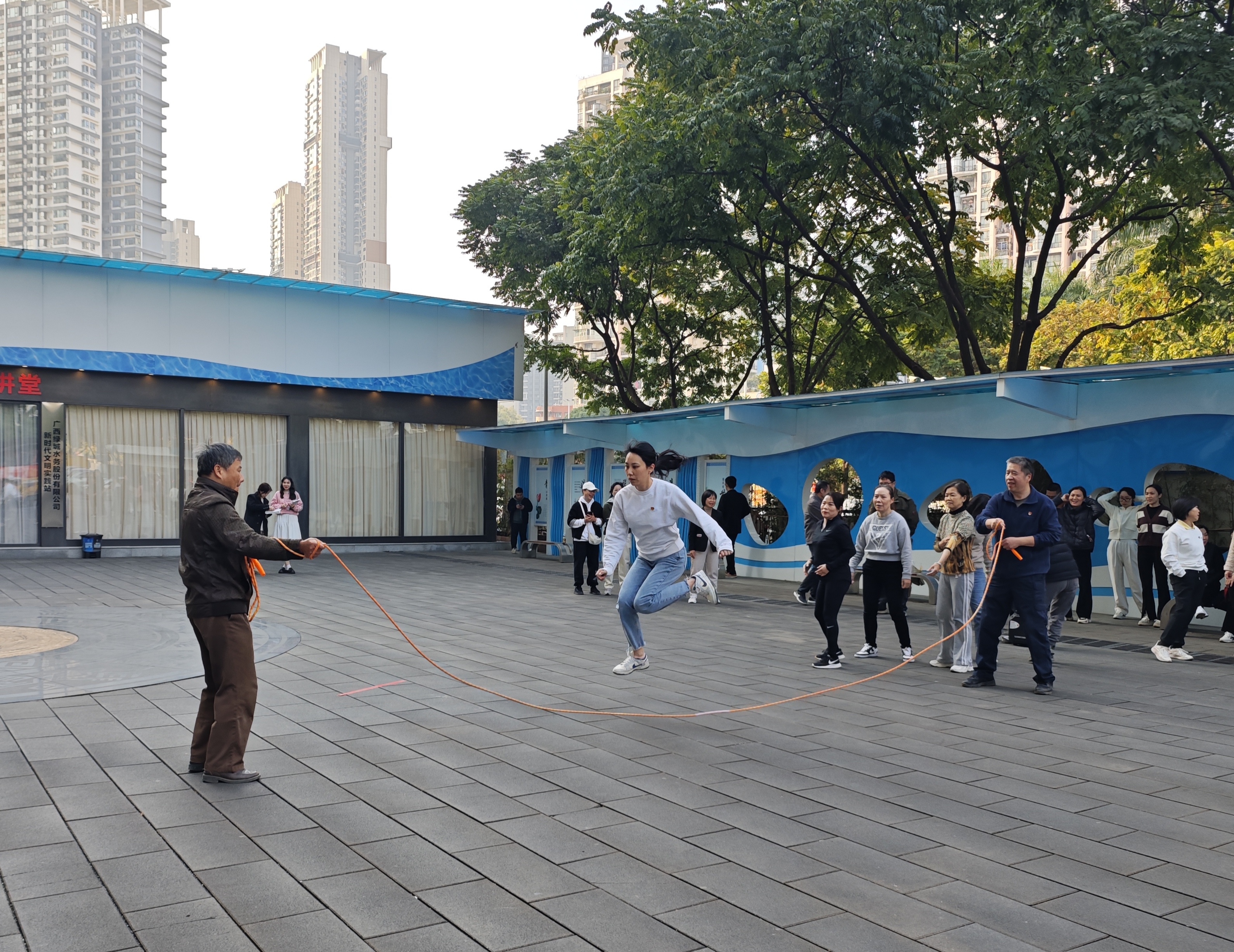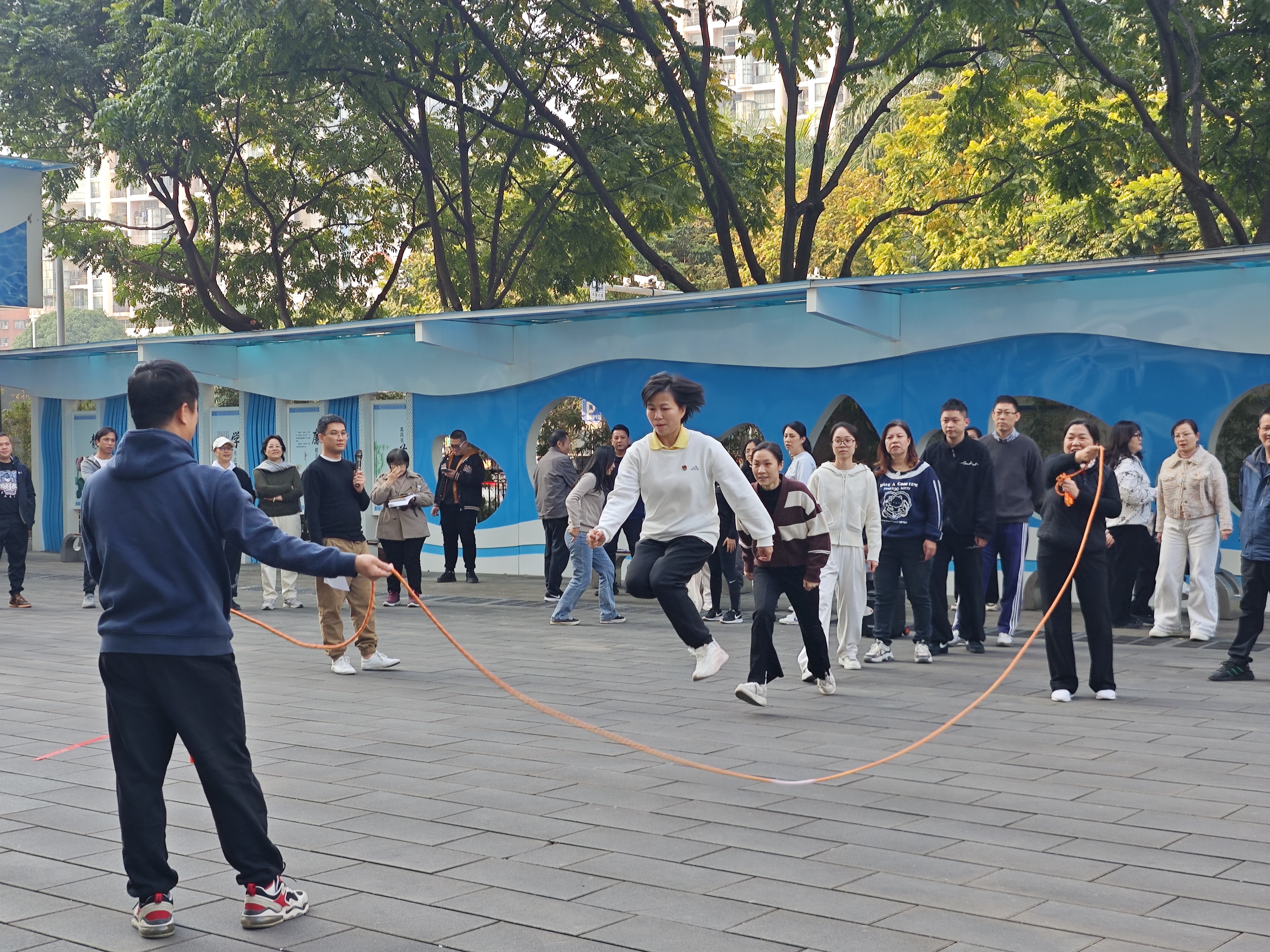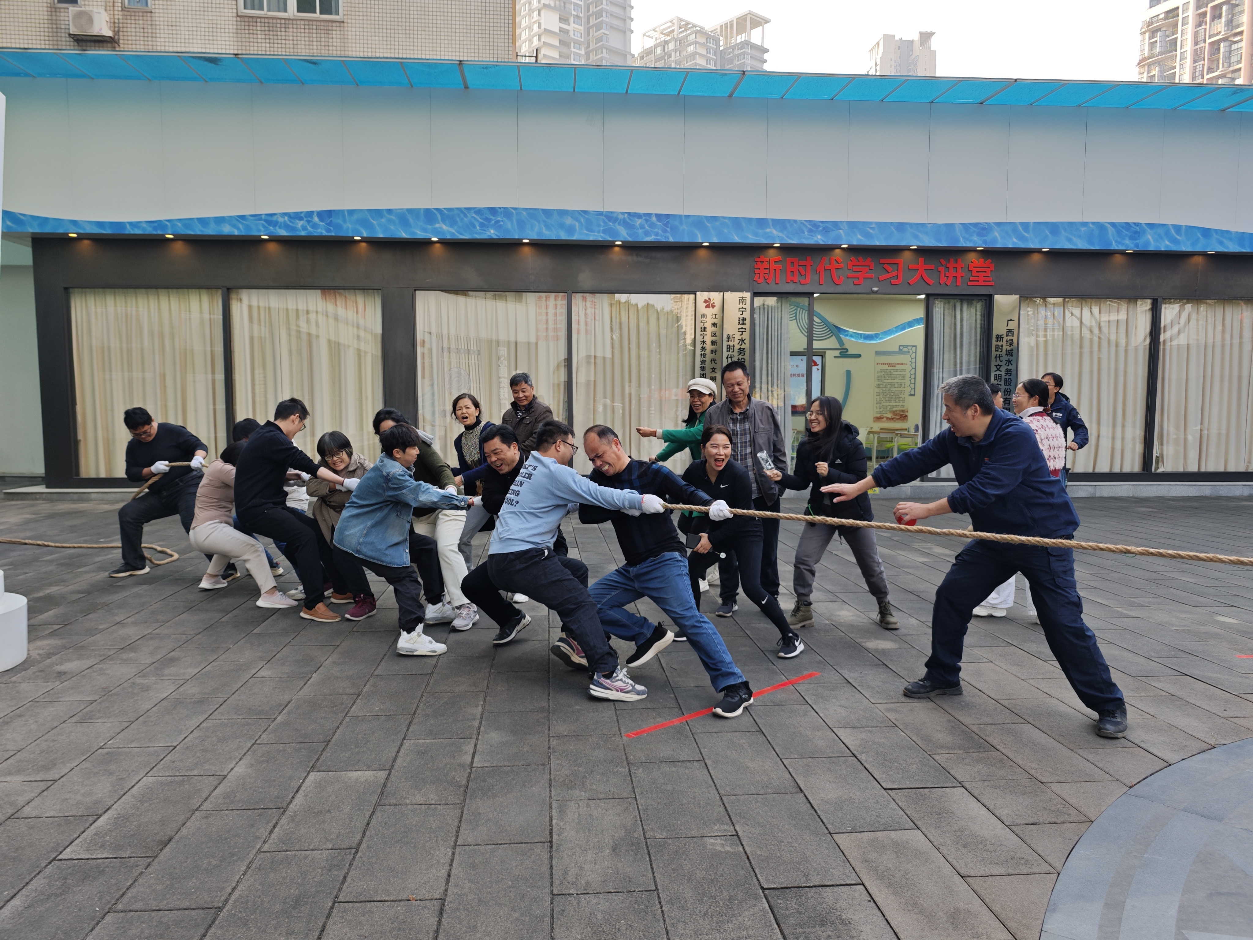 在民族體育趣味運動(dòng)會(huì )環(huán)節,兩個(gè)參賽隊伍展現出了高昂的斗志和團隊協(xié)作精神?!肮曹S奮進(jìn)”跳大繩項目中,參賽隊員們默契配合,靈活敏捷,身姿矯健,每一次跳躍都凝聚著(zhù)力量與美感。而在“聚力同心”拔河賽中,雙方隊伍更是全力以赴,選手們鉚足了勁,漲紅了臉,咬緊牙關(guān),拼盡全力。觀(guān)眾們也熱情高漲,自發(fā)組成拉拉隊,為選手們吶喊助威。整個(gè)賽場(chǎng)活力滿(mǎn)滿(mǎn),沉浸在一片歡聲笑語(yǔ)之中,充分展現了市排水公司干部職工頑強拼搏、奮發(fā)有為的精神風(fēng)貌,激發(fā)干部職工下一步以更加飽滿(mǎn)的熱情、更加昂揚的斗志投入到各項工作中。
