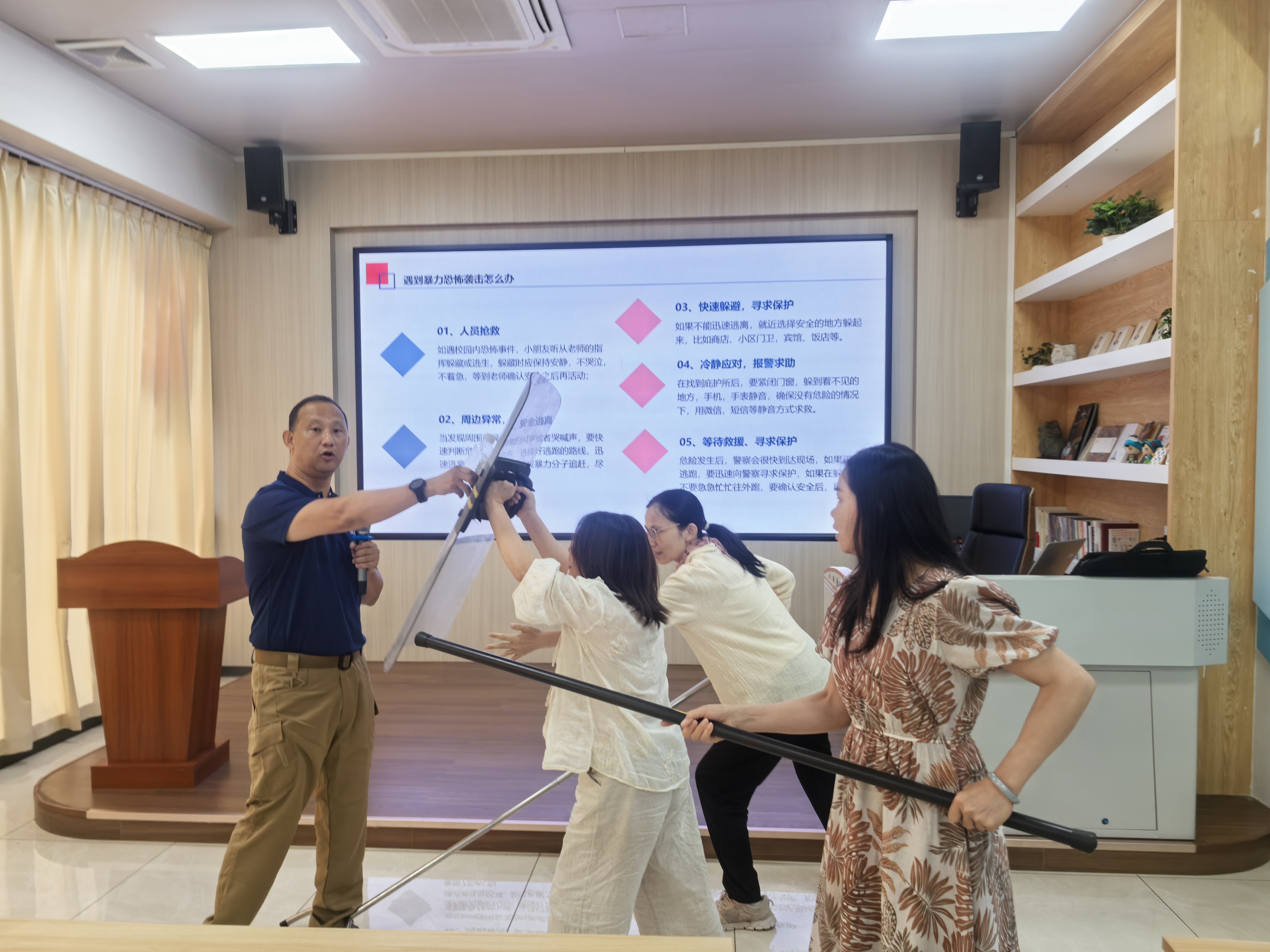 此次培訓特邀南寧市應急管理協(xié)會(huì )原惠哲教授現場(chǎng)指導,設置“盾棍叉陣型”“反恐防爆桌面推演”等實(shí)操課程,通過(guò)最小作戰單元協(xié)同訓練強化快速反應能力。培訓還系統解讀了《中華人民共和國國家安全法》《突發(fā)事件應對法》等法律法規,結合昆明暴恐案等典型案例,剖析當前國際反恐形勢與公共設施安全風(fēng)險。