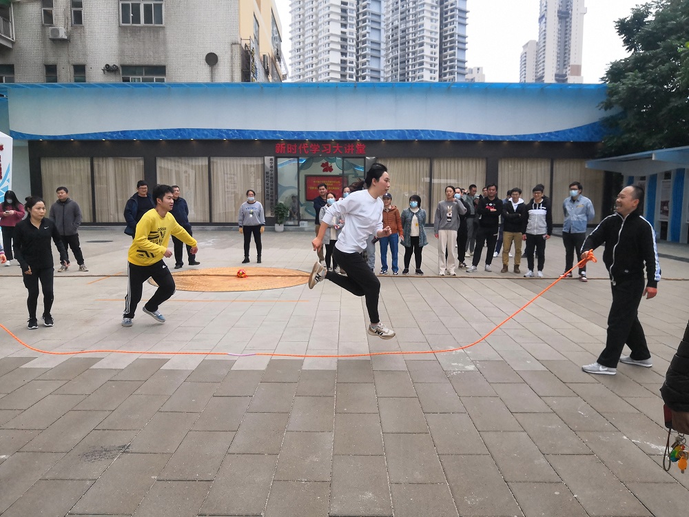 活動(dòng)第二個(gè)環(huán)節是運動(dòng)會(huì ),設有跳大繩和拔河兩個(gè)團體項目,共40名運動(dòng)員參加比賽。團體項目講究隊員間的協(xié)調配合,在跳大繩環(huán)節,參賽選手們經(jīng)過(guò)簡(jiǎn)單的練習便迅速進(jìn)入了狀態(tài)。隨著(zhù)長(cháng)繩上下飛舞,選手們看準時(shí)機,一個(gè)接一個(gè)跳起、躍過(guò),干凈利落。拔河項目中,選手們各個(gè)精神飽滿(mǎn)、整裝以待。隨著(zhù)裁判員一聲令下,參賽選手們鉚足全身的勁兒,力往一處使,繡球在中線(xiàn)兩端來(lái)回移動(dòng),扣人心弦。
