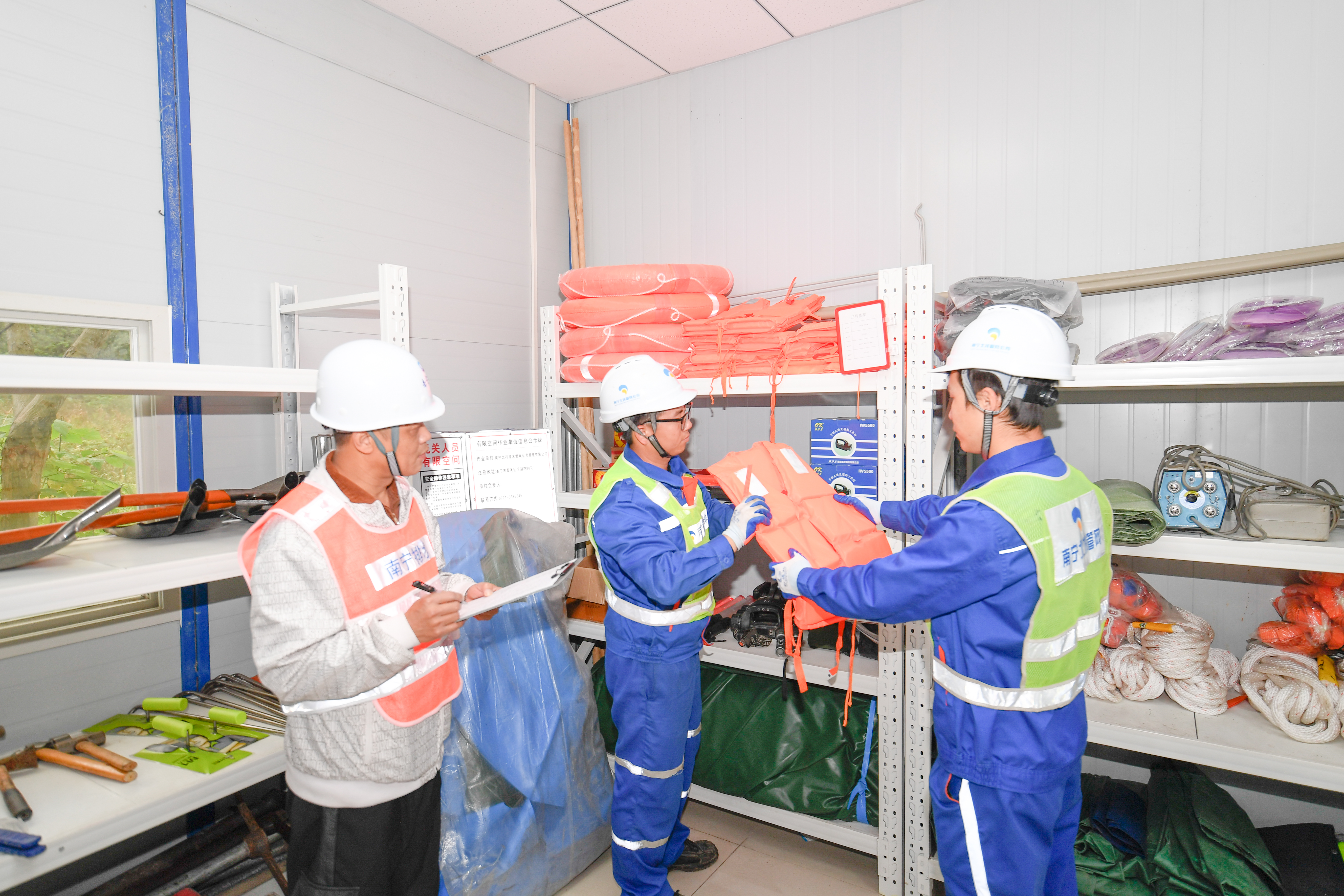 工作人員在倉庫里清點(diǎn)應急搶險物資。